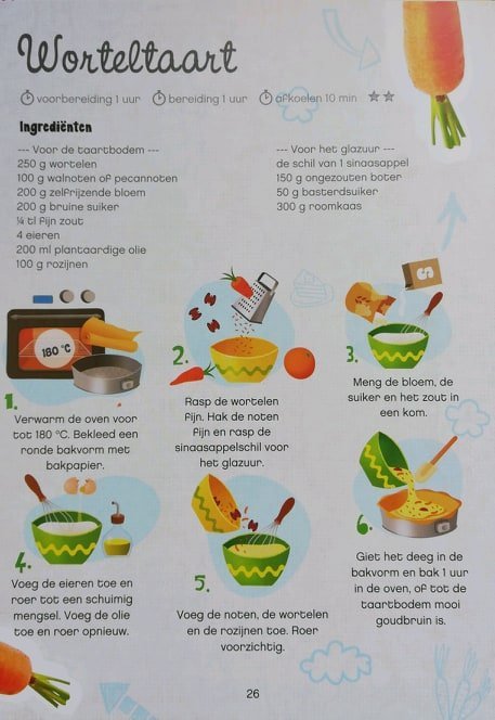 Zin om de chef-kok in jezelf te ontdekken? Hieronder vinden jullie 2 recepten in de vorm van een stappenplan om aan de slag te gaan in de keuken. Wie wil een stukje worteltaart?